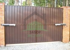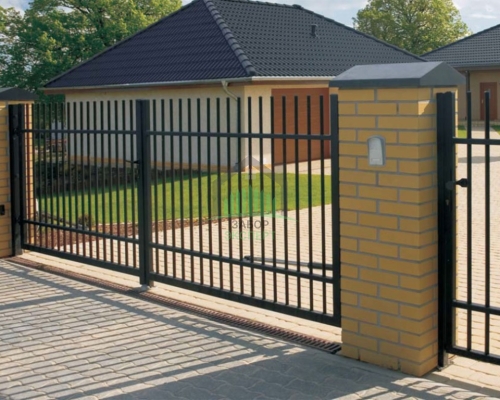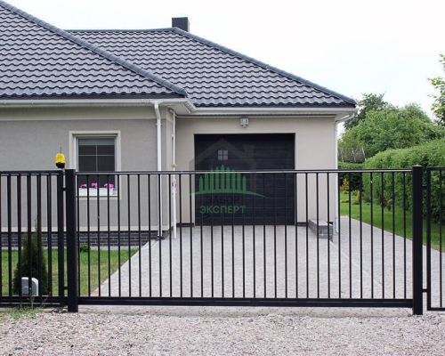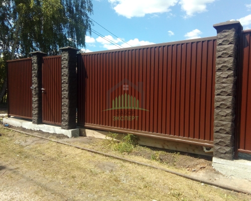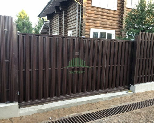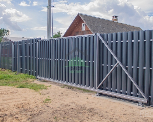 Откатные ворота, кирпич для столбов и все сопутствующие материалы для ленточного фундамента доставляются отдельно.
